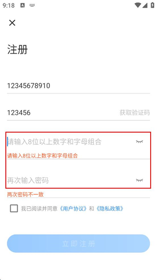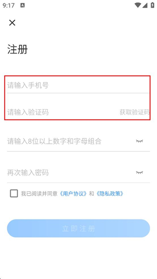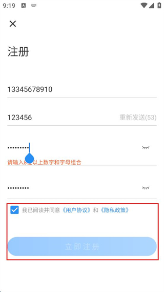 4、勾選已閱讀并同意用戶協(xié)議和隱私政策,點(diǎn)擊立即注冊(cè)完成注冊(cè)。
