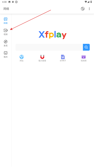 1、啟動(dòng)影音先鋒的APP,進(jìn)入首頁(yè)點(diǎn)擊左側(cè)視頻的圖標(biāo)。