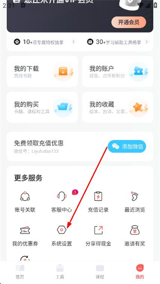 2、在我的頁(yè)面中,找到并點(diǎn)擊下方的系統(tǒng)設(shè)置選項(xiàng)。
