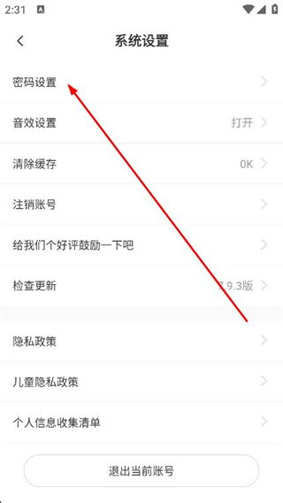 3、進(jìn)入系統(tǒng)設(shè)置頁(yè)面后,找到并點(diǎn)擊密碼設(shè)置選項(xiàng)。