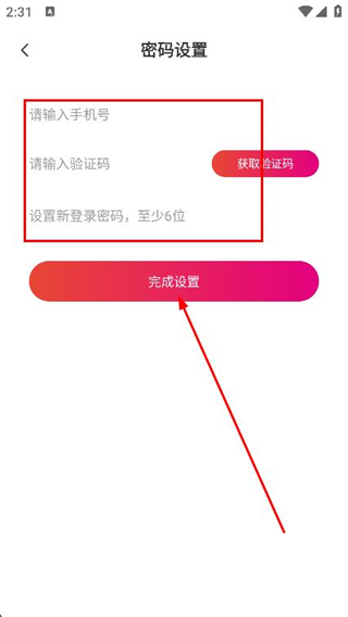 4、根據(jù)要求設(shè)置密碼,點(diǎn)擊完成設(shè)置,即可完成密碼修改。