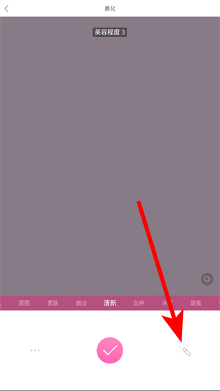 3、點(diǎn)擊右下角的編輯圖標(biāo),進(jìn)入磨皮等細(xì)節(jié)調(diào)整頁面。