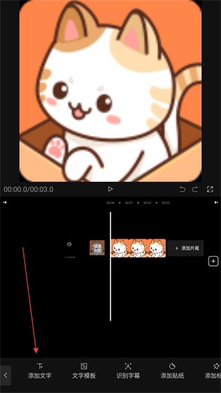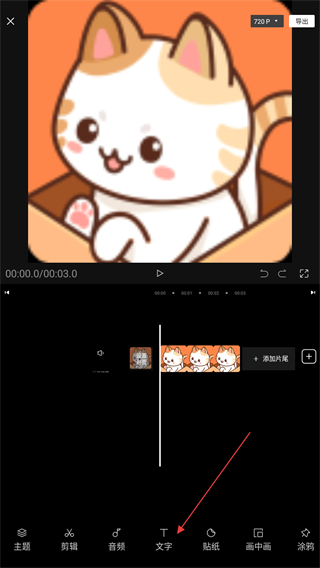 3、進(jìn)入剪輯的頁(yè)面內(nèi),用戶需點(diǎn)擊下方文字的功能按鈕。