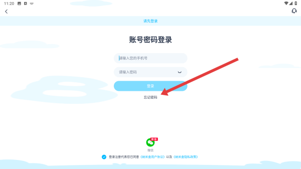 2、在賬號密碼登錄頁面中,如果忘記了密碼,點擊下方的忘記密碼按鈕進行解決。