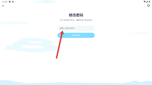 3、跳轉(zhuǎn)到修改密碼頁面時,在輸入框中填寫手機號以獲取驗證碼修改密碼。