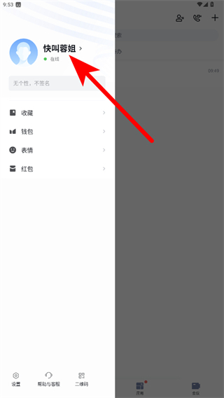 2、在彈出的側(cè)邊欄中,點(diǎn)擊自己的昵稱(chēng)如快叫蓉姐。