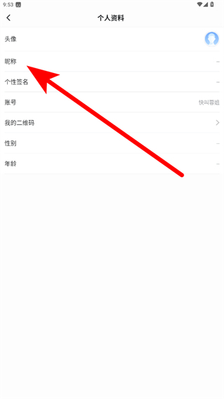 3、進(jìn)入個(gè)人資料頁(yè)面后,點(diǎn)擊昵稱(chēng)選項(xiàng)。