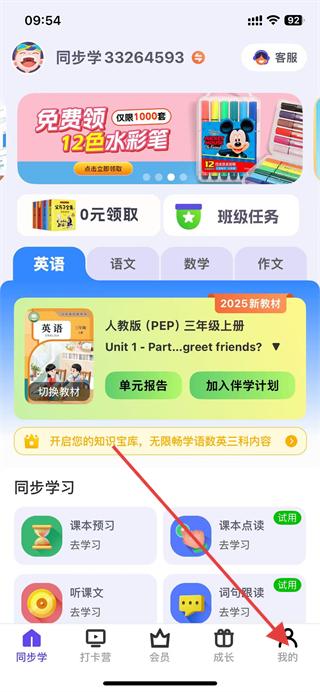 1、打開同步學(xué)app,點(diǎn)擊底部導(dǎo)航欄我的選項(xiàng)。