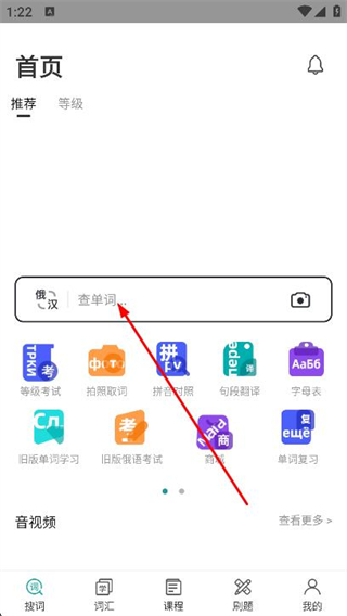 1、打開俄語學習7500km,點擊首頁的查單詞搜索框。