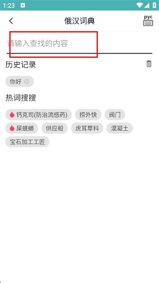2、在俄漢詞典頁面,在輸入框中輸入需要查找的單詞。
