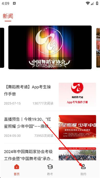 1、打開舞蹈教考通,點擊底部導(dǎo)航欄我的選項。