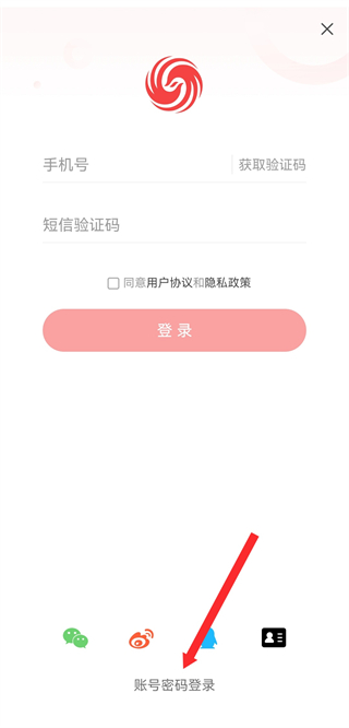 3、在登錄界面中,點擊賬號密碼登錄,進入賬號密碼登錄頁面。