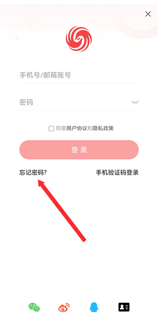 4、在賬號密碼登錄頁面,點擊忘記密碼,按照提示完成密碼找回。