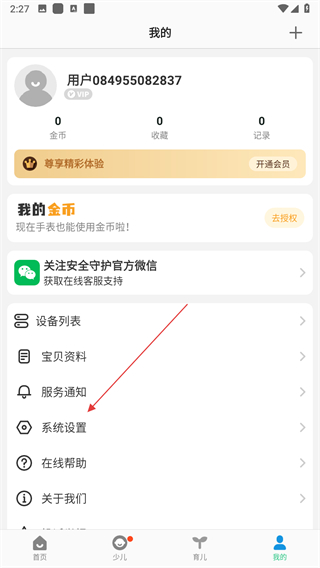 1、打開安全守護應用,進入我的頁面后點擊系統(tǒng)設置。