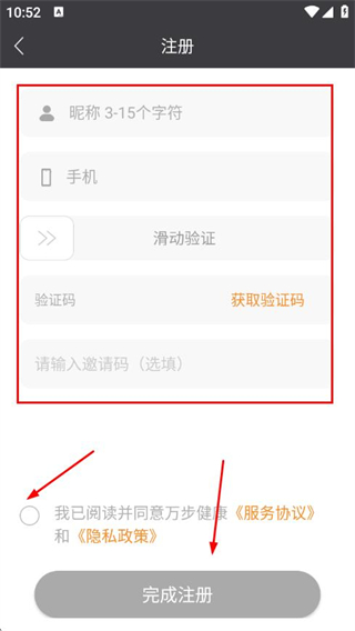 2、填寫昵稱、手機(jī)號(hào),完成滑動(dòng)驗(yàn)證,獲取輸入驗(yàn)證碼,勾選協(xié)議,點(diǎn)擊完成注冊(cè)。