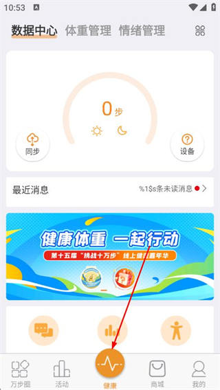 3、注冊(cè)完成后即可進(jìn)入APP健康頁(yè)面,開(kāi)始使用相關(guān)功能。