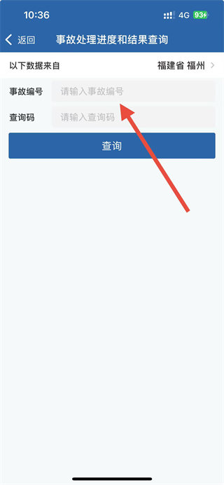 3、在查詢頁面輸入框內(nèi),輸入事故編號和查詢碼。