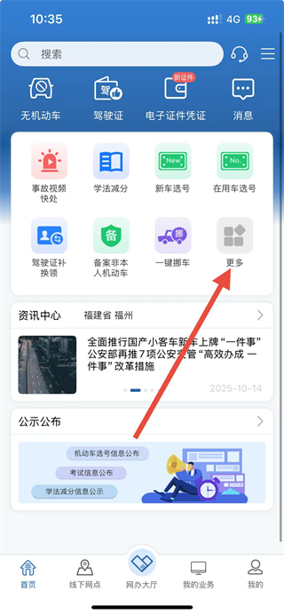 1、在交管12123app首頁點擊更多選項,進入業(yè)務中心頁面。