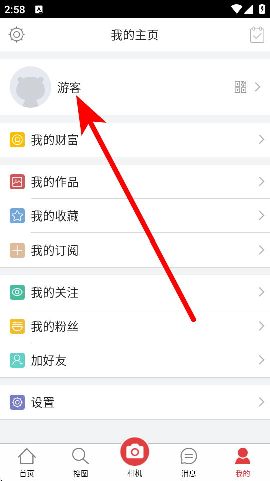 2、在我的主頁里,點擊頭像旁的游客位置,喚起登錄選項。