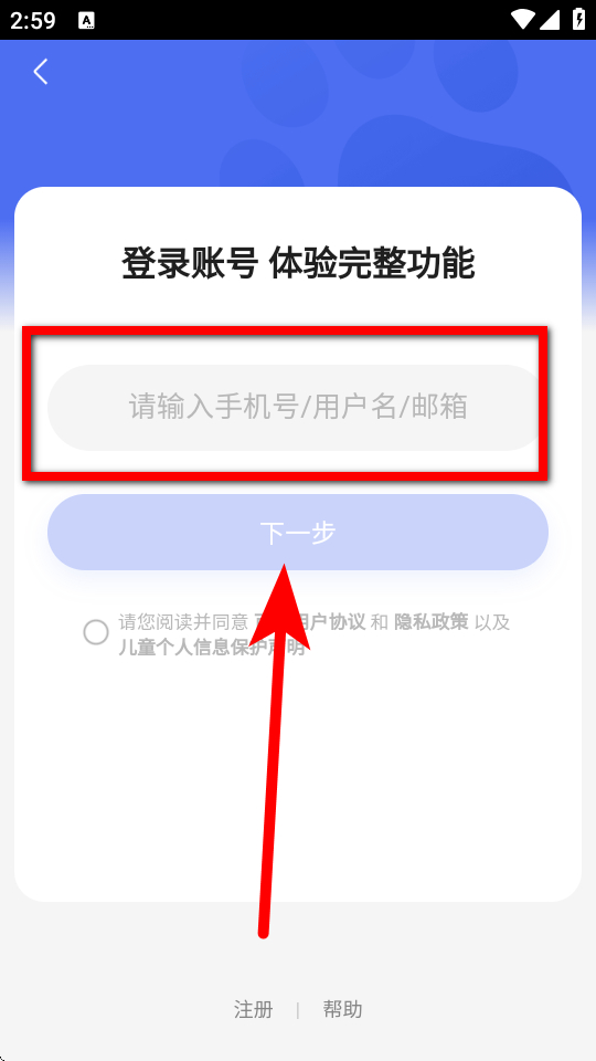 4、在登錄賬號界面,輸入手機(jī)號后點擊下一步,并按照后續(xù)提示完成登錄操作。