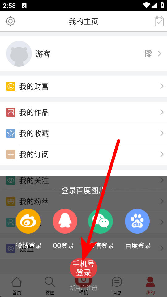 1、打開百度圖片應(yīng)用,點擊底部導(dǎo)航欄中我的選項,進(jìn)入我的主頁。