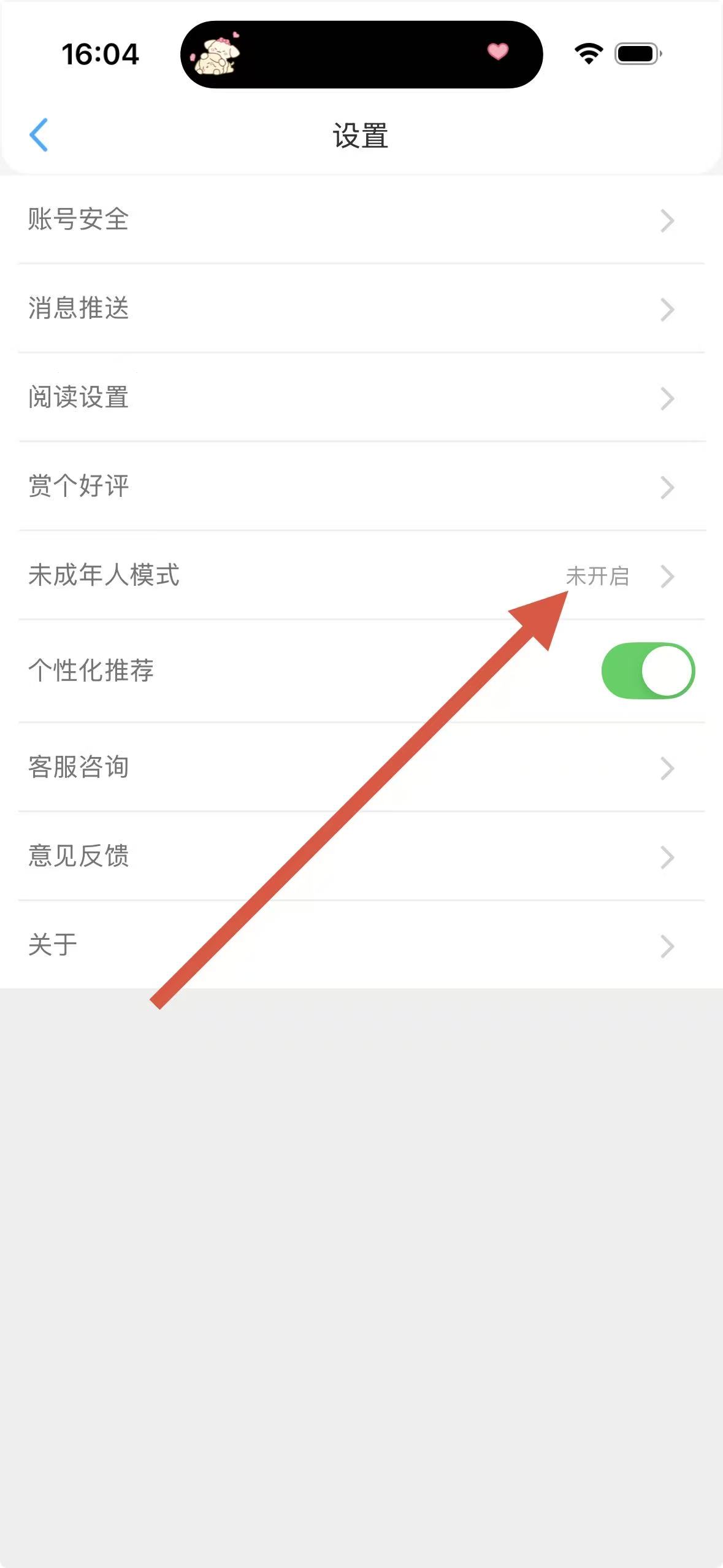 3、在設(shè)置界面,點(diǎn)擊未成年人模式選項,進(jìn)入開啟未成年人模式頁面。
