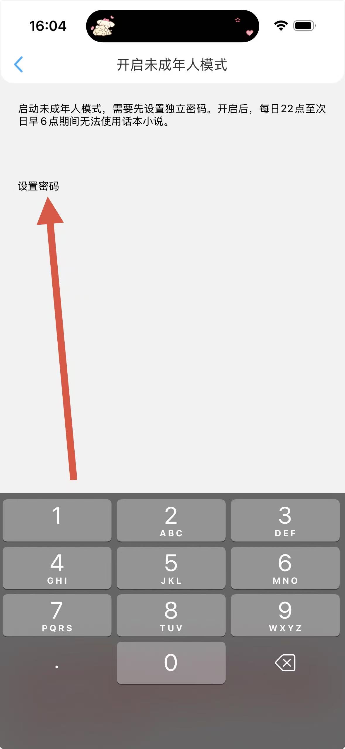 4、在開啟未成年人模式頁面,設(shè)置密碼后,即可開啟未成年人模式。