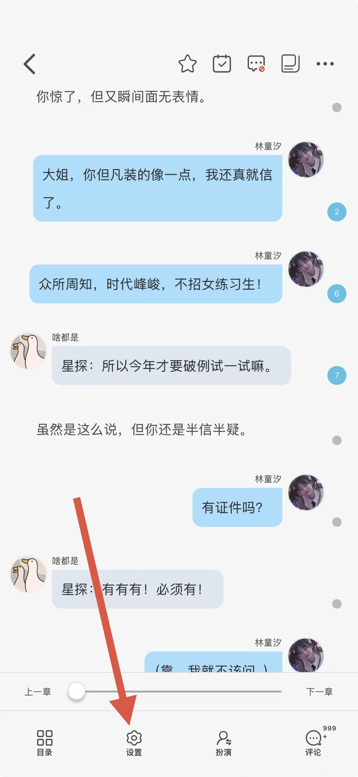 3、在閱讀界面,點(diǎn)擊設(shè)置選項,彈出設(shè)置功能區(qū)域。