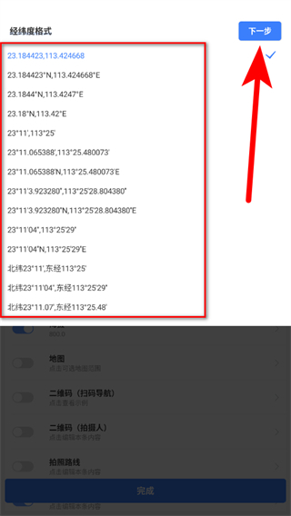 3、在經(jīng)緯度格式列表中選擇目標(biāo)格式,點擊下一步。