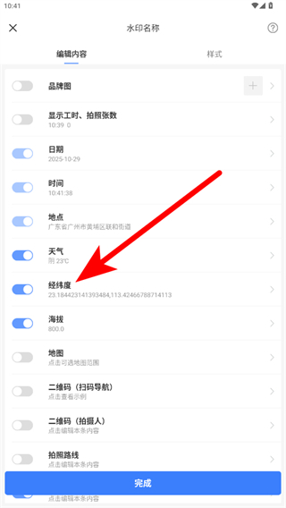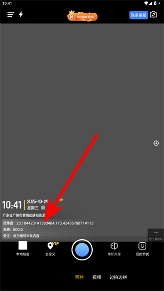 1、打開搞定水印相機應(yīng)用,點擊經(jīng)緯度區(qū)域進(jìn)入編輯頁面。