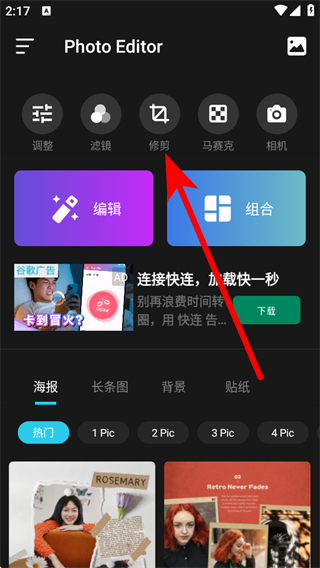 只需左右滑動主界面即可選擇圖片,然后編輯圖片