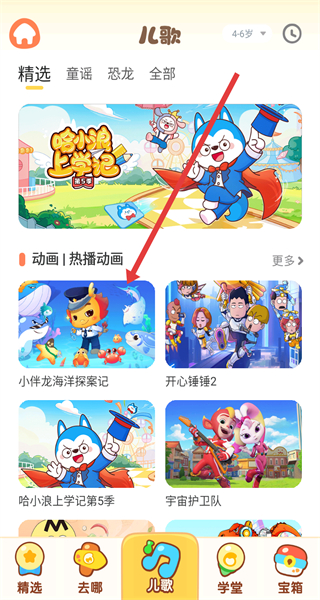 2、在主界面點(diǎn)擊底部“兒歌”,進(jìn)入兒歌頁(yè)面。