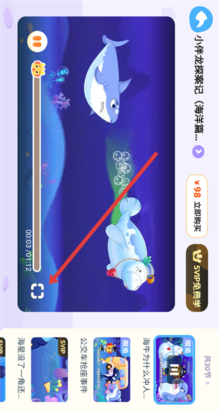 3、在兒歌頁(yè)面點(diǎn)擊“小伴龍海洋探案記”動(dòng)畫,進(jìn)入播放界面。