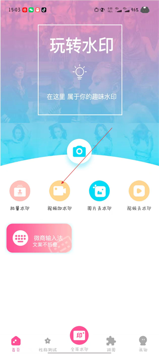 1、打開PS去水印應(yīng)用,點擊視頻加水印選項。