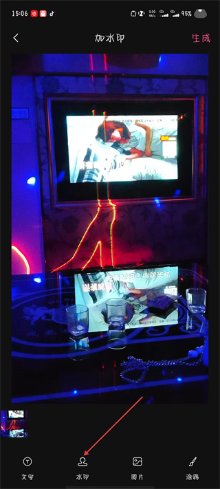 3、進入加水印頁面后,點擊底部的水印選項。