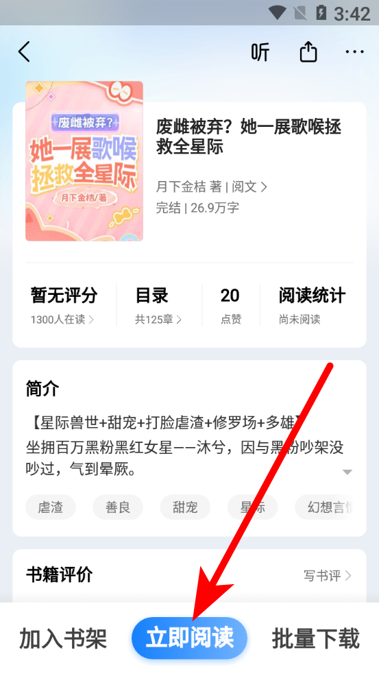 2、在書籍詳情界面,點擊立即閱讀按鈕,進入閱讀頁面。
