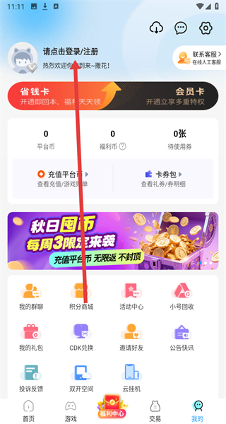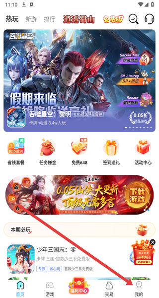 1、在進(jìn)入到巴兔游戲首頁中時(shí),可以點(diǎn)擊右下角我的按鈕,進(jìn)入我的主頁。