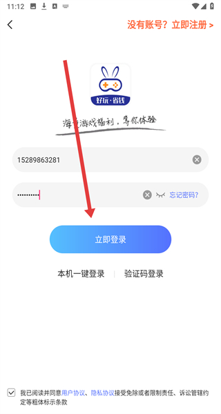 4、在填寫完登錄賬號(hào)信息后,通過點(diǎn)擊立即登錄按鈕,即可完成登錄賬號(hào)。