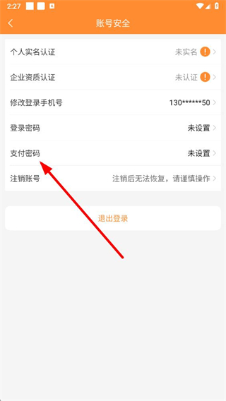 3、在賬號安全頁面點擊支付密碼選項,彈出操作選項框。