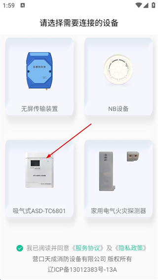 3、返回設(shè)備選擇頁面,選擇其他設(shè)備如吸氣式ASD-TC6801。