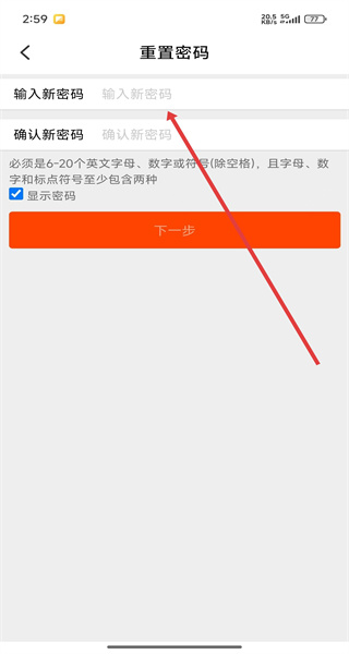 4、進入“重置密碼”頁面,依次輸入新密碼與確認新密碼,提交后完成密碼重置。
