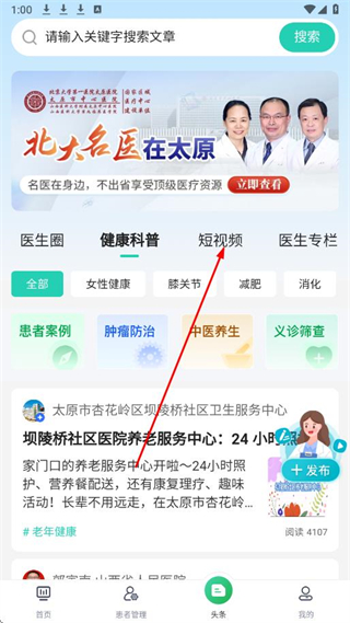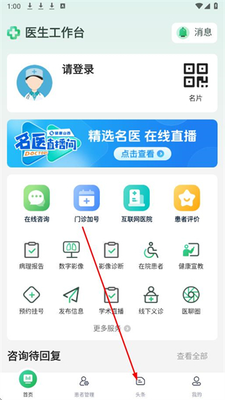 1、打開健康山西醫(yī)生版APP,點(diǎn)擊導(dǎo)航欄中的頭條。