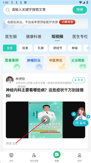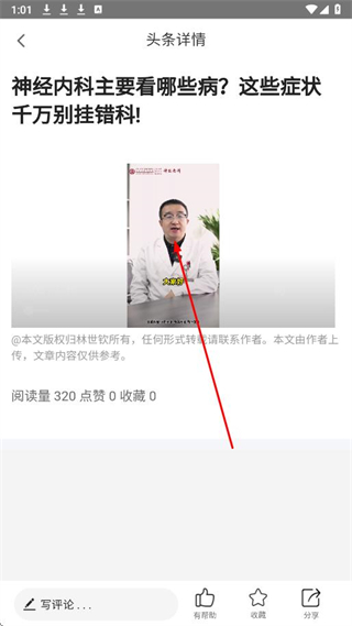 4、進(jìn)入頭條詳情頁面,即可觀看該短視頻,了解相關(guān)醫(yī)療知識(shí)等內(nèi)容。