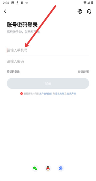 3、在切換到賬號密碼登錄頁面后,可以點(diǎn)擊輸入框依次填寫手機(jī)號和登錄密碼信息。