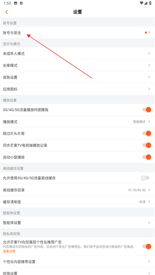 2、進(jìn)入設(shè)置的界面內(nèi),點(diǎn)擊最上方賬號與安全的功能按鈕。