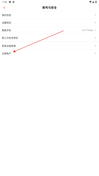 3、進(jìn)入賬號與安全的頁面內(nèi),點(diǎn)擊下方注銷賬戶的功能按鈕。