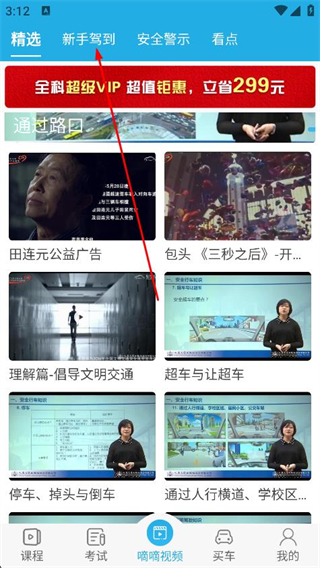 2、在嘀嘀視頻頁面中,選擇并點擊新手駕到標(biāo)簽。