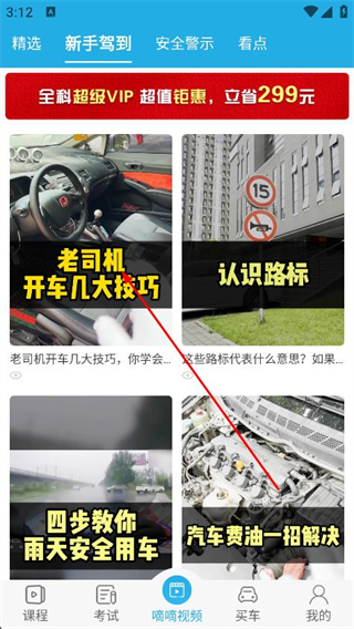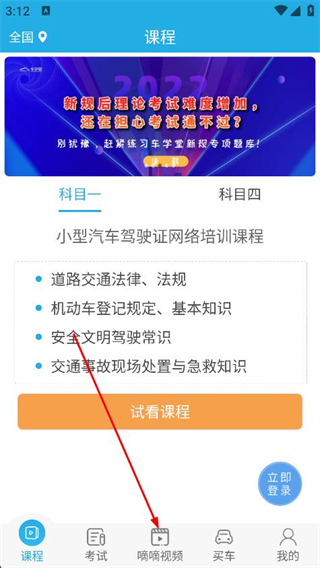 1、打開車學(xué)堂app,點擊底部導(dǎo)航欄的嘀嘀視頻選項。