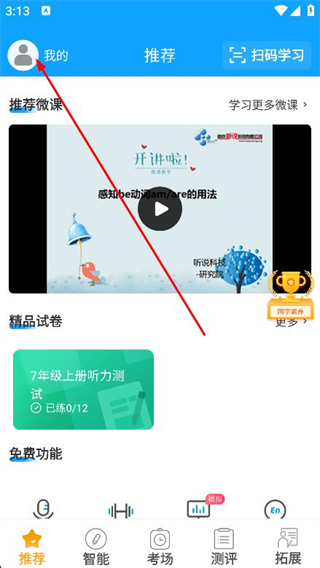 1、打開外語通app,點擊頁面左上角的我的圖標。