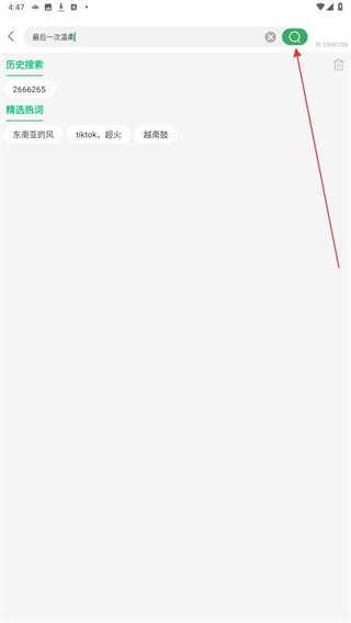 2、在輸入框內(nèi)輸入歌曲后,點擊右側(cè)搜素的功能按鈕。